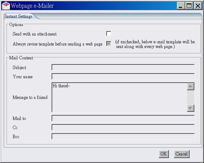 Use F4 or click on F4 button at FunctionKey Bar While browing a webpage, Webpage e-Mailer will display a editable window.